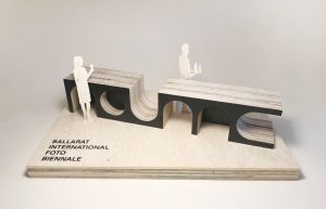 Located within the Union Bank Building on Lydiard Street, this pro-bono project was developed for the Ballarat International Foto Biennale. Designed as a flexible point-of-sale or bar unit for the Biennale’s many social events, the piece is conceived as a temporary insertion that introduces a playful geometric language, deliberately offset against the building’s restrained heritage fabric.