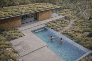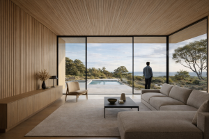 A sneak peek at an early concept for a house on the Surf Coast. The proposal is grounded in a restrained palette of concrete, steel, and hardwood, assembled to form a calm, durable structure suited to a demanding coastal environment. Heavy elements anchor the building to site, while lighter components mediate light, views, and the shifting conditions of the coast.